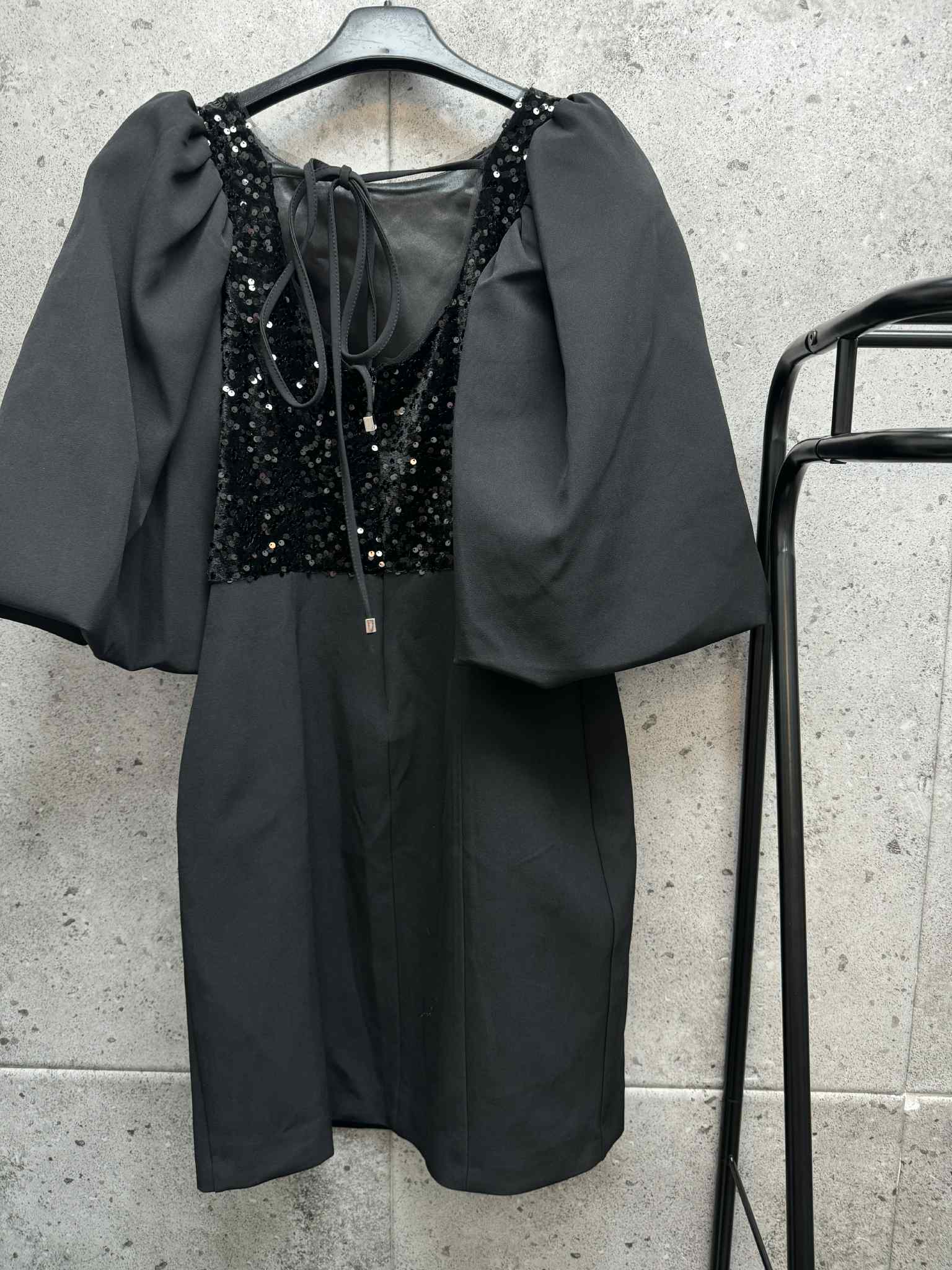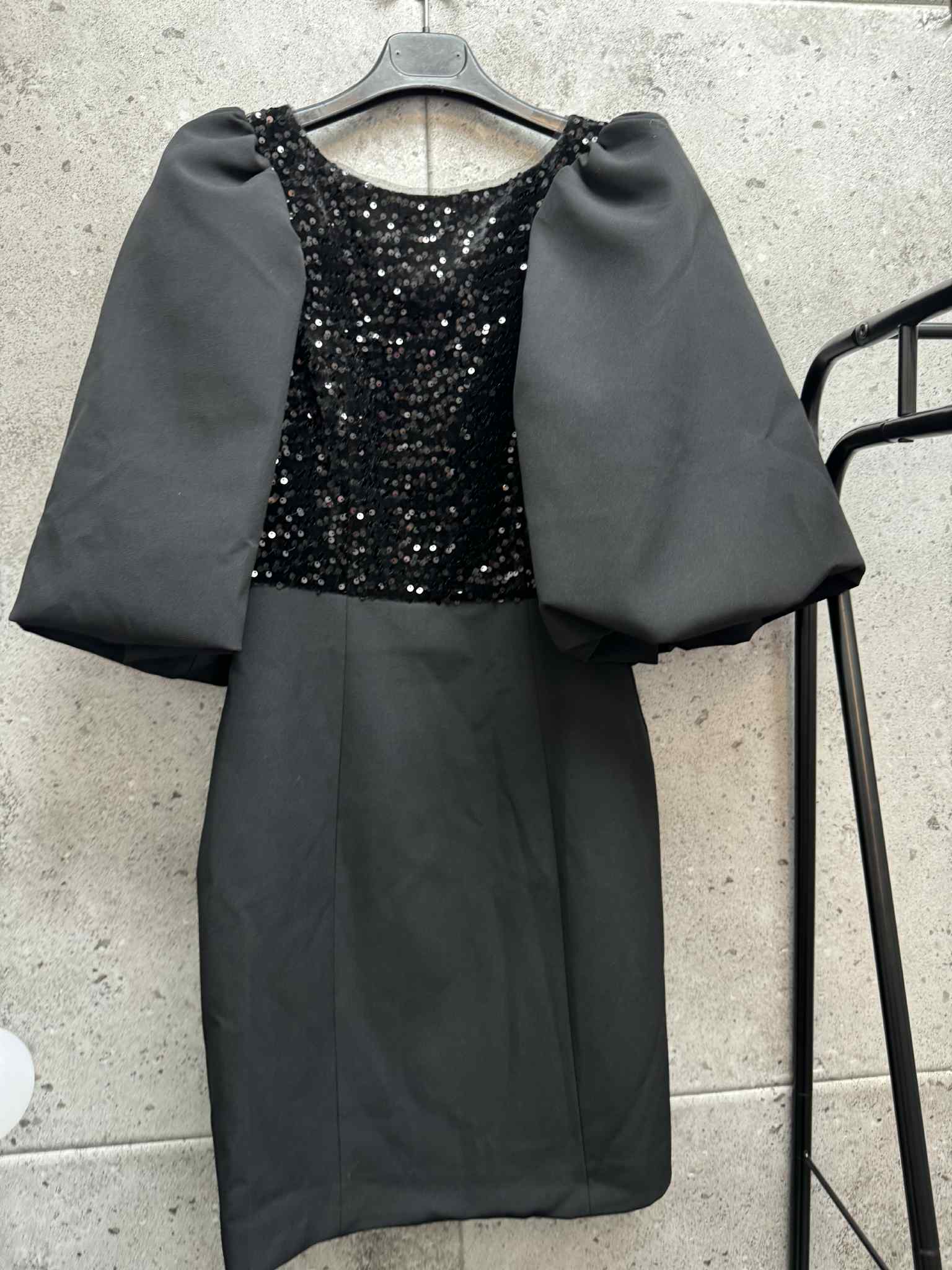 Nuostabi suknyte pūstomis rankovėmis. Žvynelių priekis. Atrodo įspūdingai. Liko 36 dydis