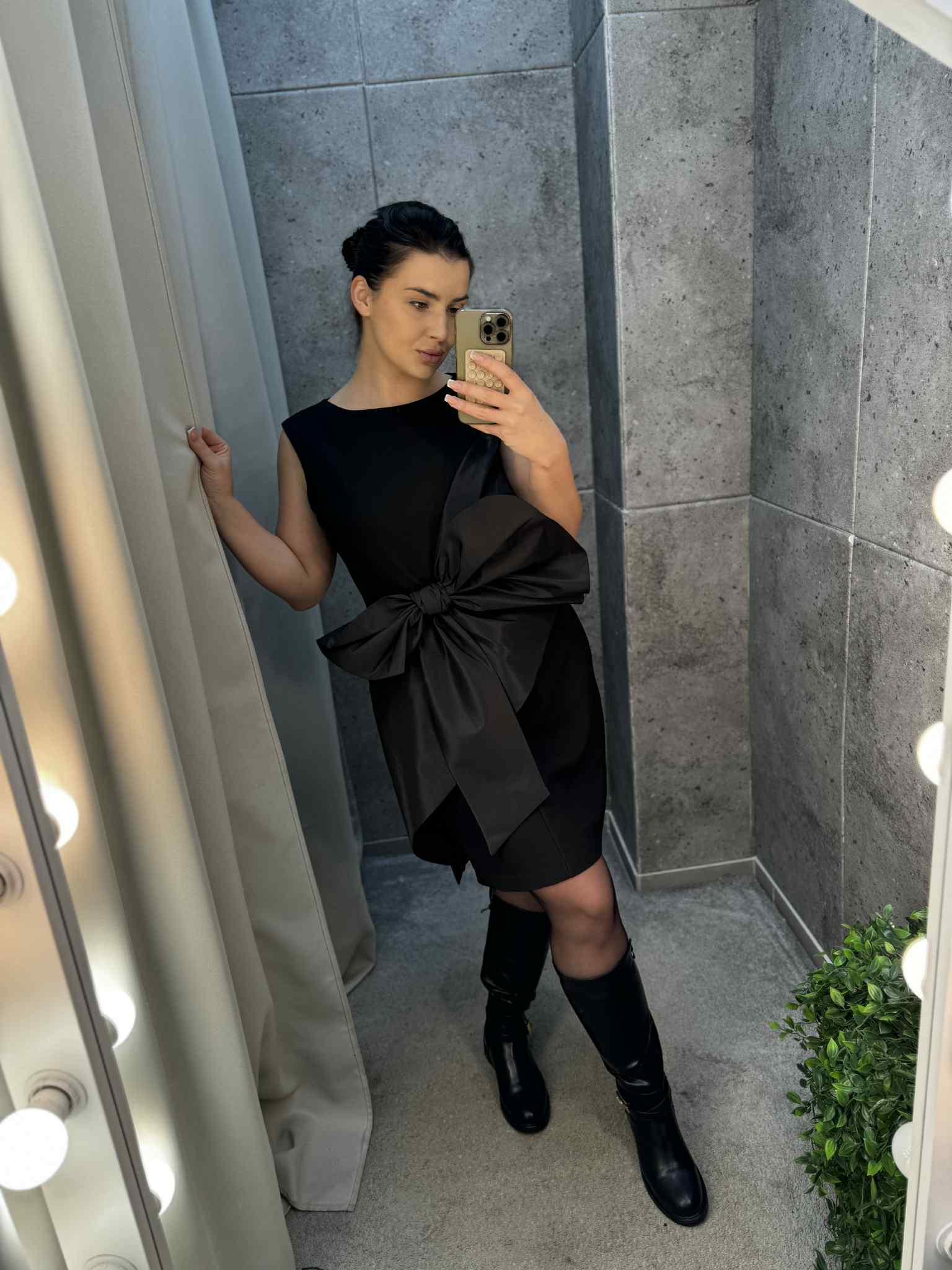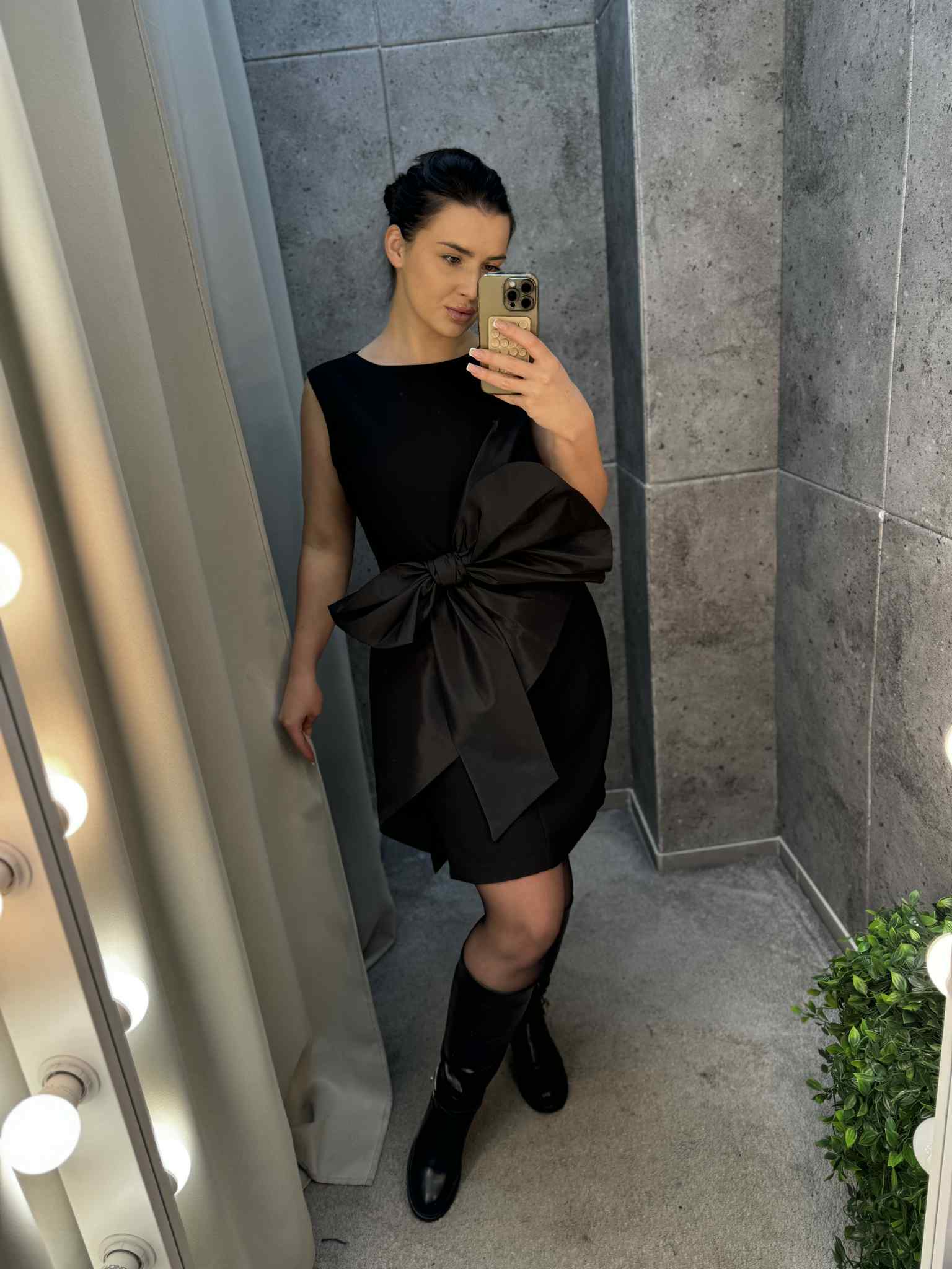 Suknelė 40 dydis. Sudėtis - 75% poliesteris, 25% viskozė. Ilgis - 95, pečiai - 41, krūtinė - 49/52, liemuo - 41/42, klubai - 53/57, be rankovių.
