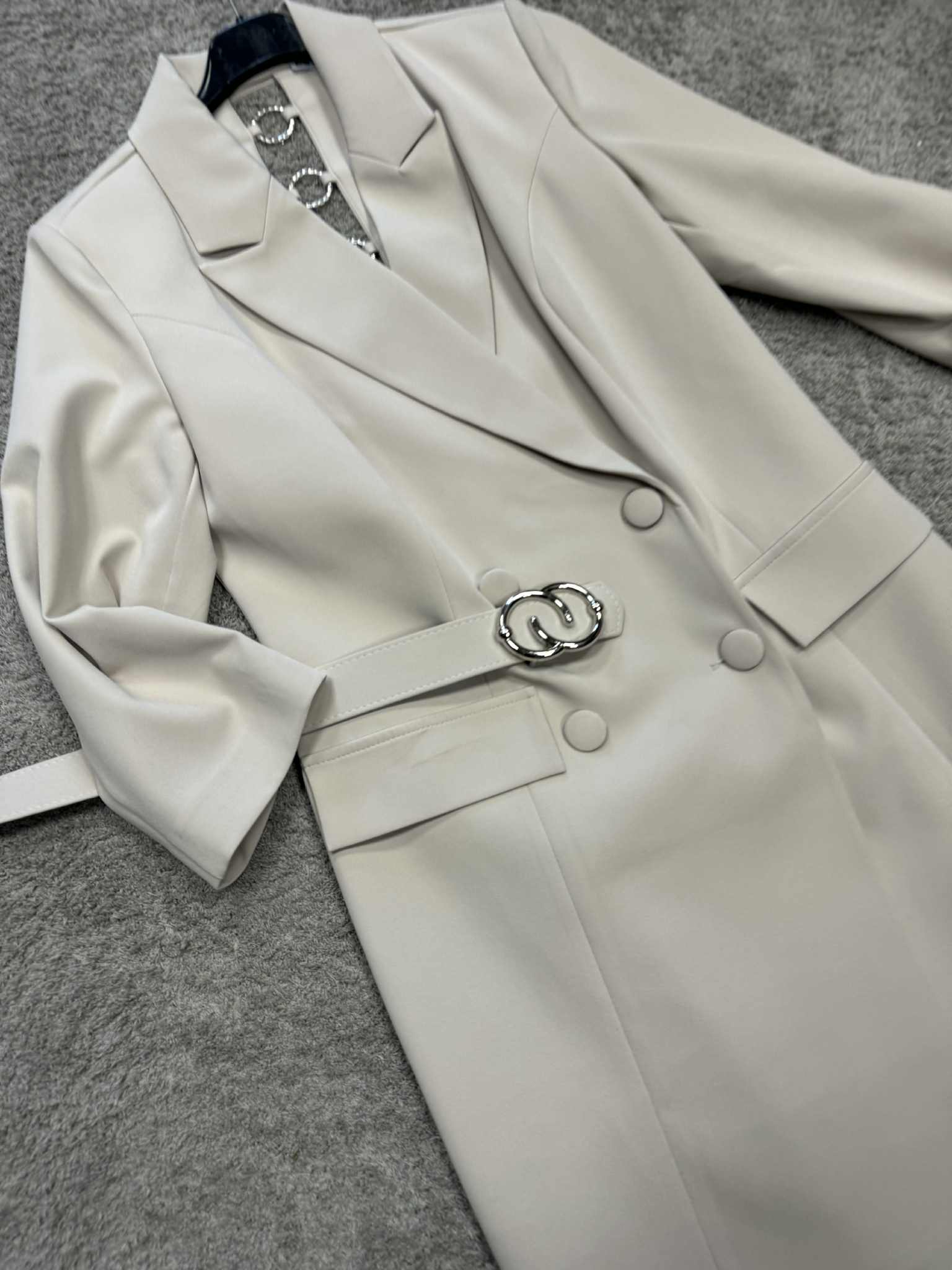 Suknelė 38 dydis. Sudėtis - 88% poliesteris, 12% elastanas. Ilgis - 88, pečiai - 39, krūtinė - 45/50, liemuo - 43/44, klubai - 51/52, rankovės ilgis - 46, rankovės plotis- 18/20.