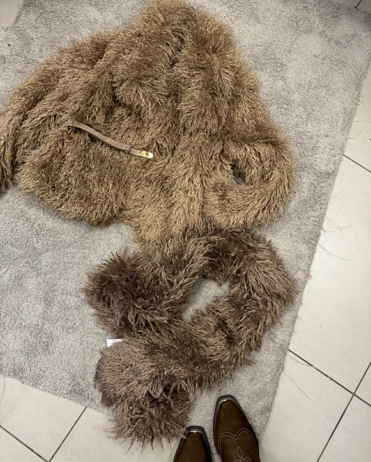 Kailiniai Sudėtis - 100% poliesteris. Ilgis - 57/60, pečiai oversized, krūtinė - 55/57, liemuo - 57/58, klubai - 57/58, rankovės ilgis - oversized, rankovės plotis- 19/20.